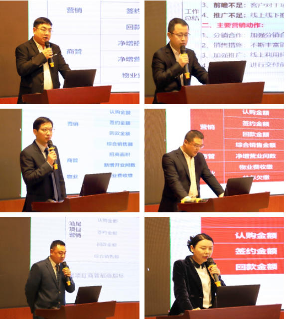 首先,他肯定了各城市公司、集团各职能中心的汗水与努力,但同时指出公司总体业绩与预期也存在较大差距,目前市场形势依然严峻,做好持久战的准备,要紧抓营销和招商,严格考核机制,奖罚分明,以结果论英雄。