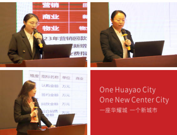 为深入总结2023年度华耀城集团经营管理工作,科学部署2024年度经营计划,确保实现2024年度各项经营目标。2024年1月13-14日,华耀城集团2023年度经营工作总结暨2024年工作计划会议在集团总部会议厅盛大召开。会议由华耀城集团总裁林金晓主持,华耀城集团董事长林贤富、集团总裁林金晓、副总裁邓春芝、副总裁李玲玲、集团各中心负责人、城市公司负责人等领导出席,各城市公司通过视频形式参加此次会议。